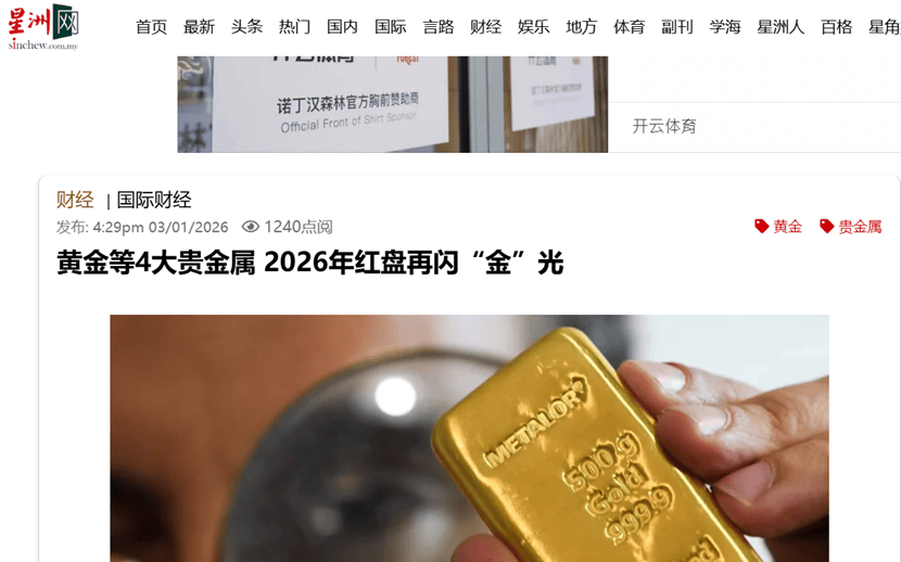 星洲网近日发文称,白银和白金在2025年的表现都优于黄金,白银上涨147%,铂金上涨127%;带动白银涨势的原因包括美国列入关键矿产清单、供给短缺、工业投资需求强劲但库存偏低。
