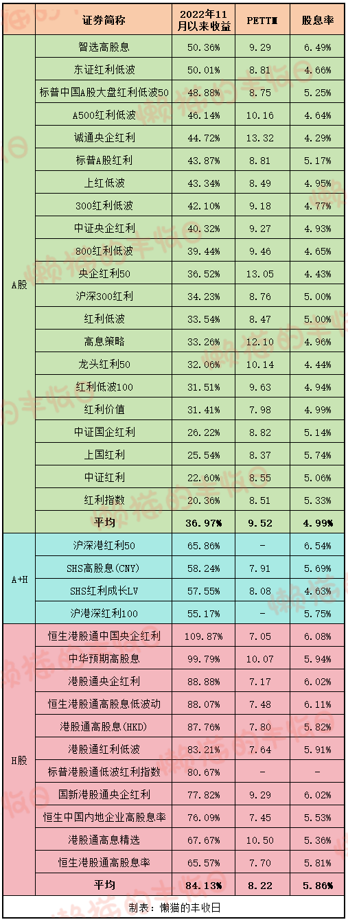 最后,贴下主要红利指数2022年11月以来收益,及最新PE、股息率对比。