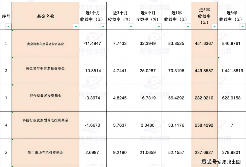 (近3年收益排名前5的土耳其养老基金收益情况,数据截止2026年4月1日)